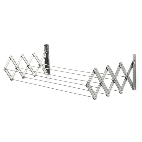 Varal sanfonado com varetas em aço carbono rebitadas oferecem maior resistência.